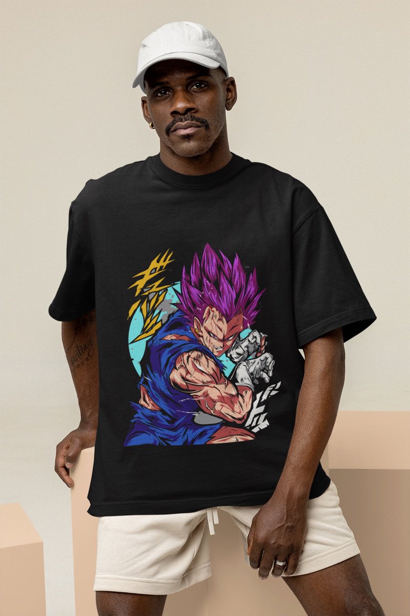 Showcase the pride and power of Vegeta with this epic T-shirt! As the Saiyan Prince, Vegeta’s unyielding determination and relentless pursuit of strength have made him one of the most iconic characters in anime history. This design captures the essence of his warrior spirit and unwavering pride.